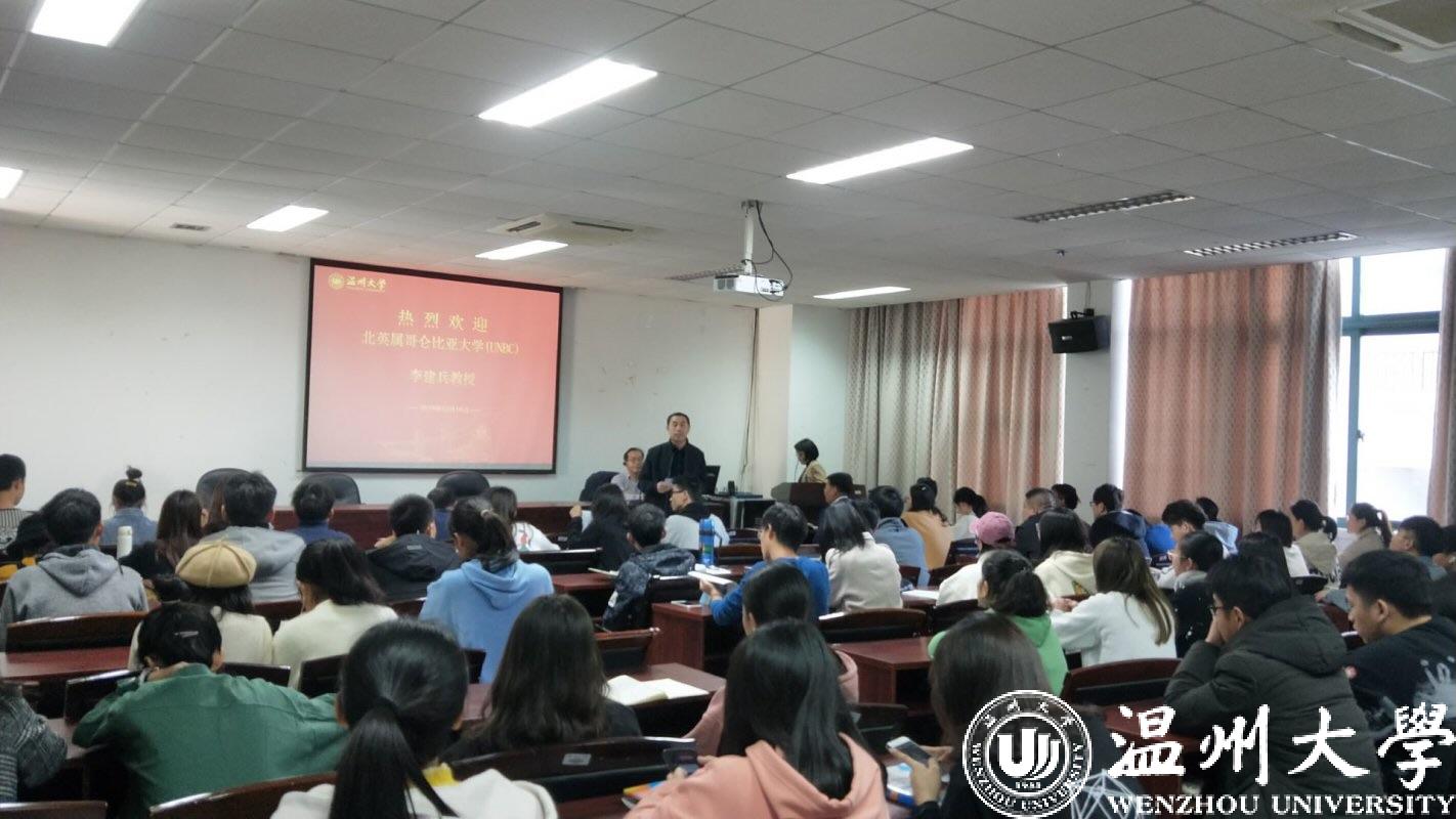 报告结束后,李建兵教授向大家介绍了加拿大UNBC的情况,包括学校的地理位置、校园内人性化的建筑、优美的环境和学校周边的风景等。据悉,加拿大UNBC在同类型大学中名列前茅,与永利集团也有硕士和博士的联合培养项目,感兴趣的同学可以通过邮箱与李建兵教授联系或者直接与学院负责国际项目的老师交流来进一步了解。