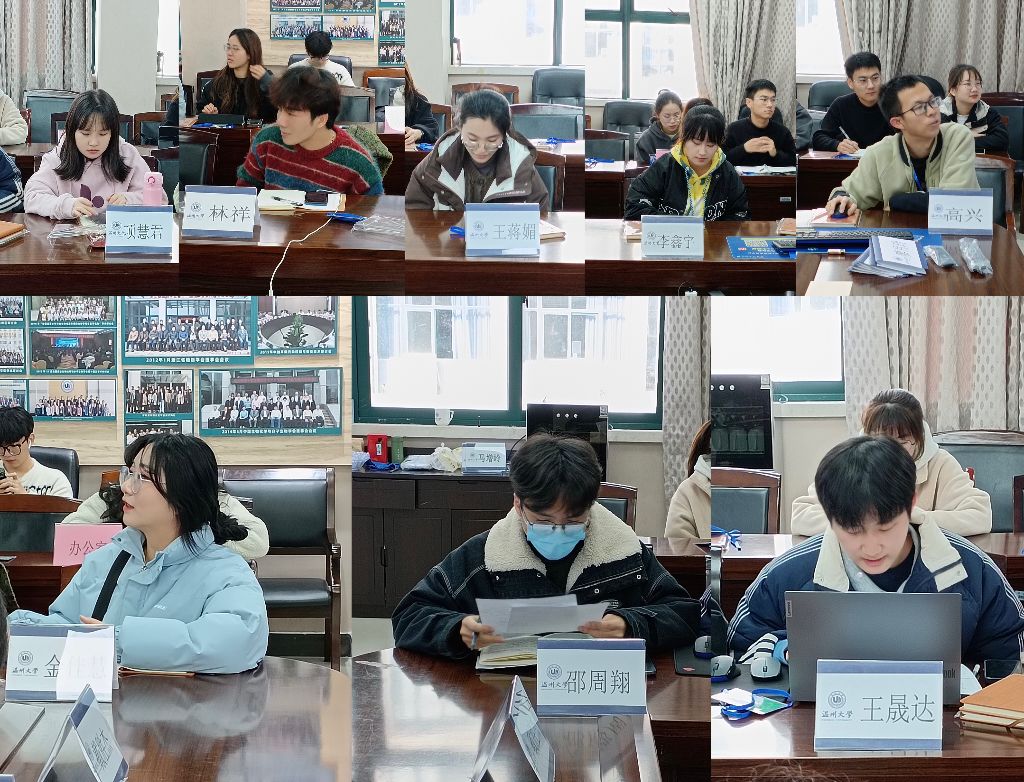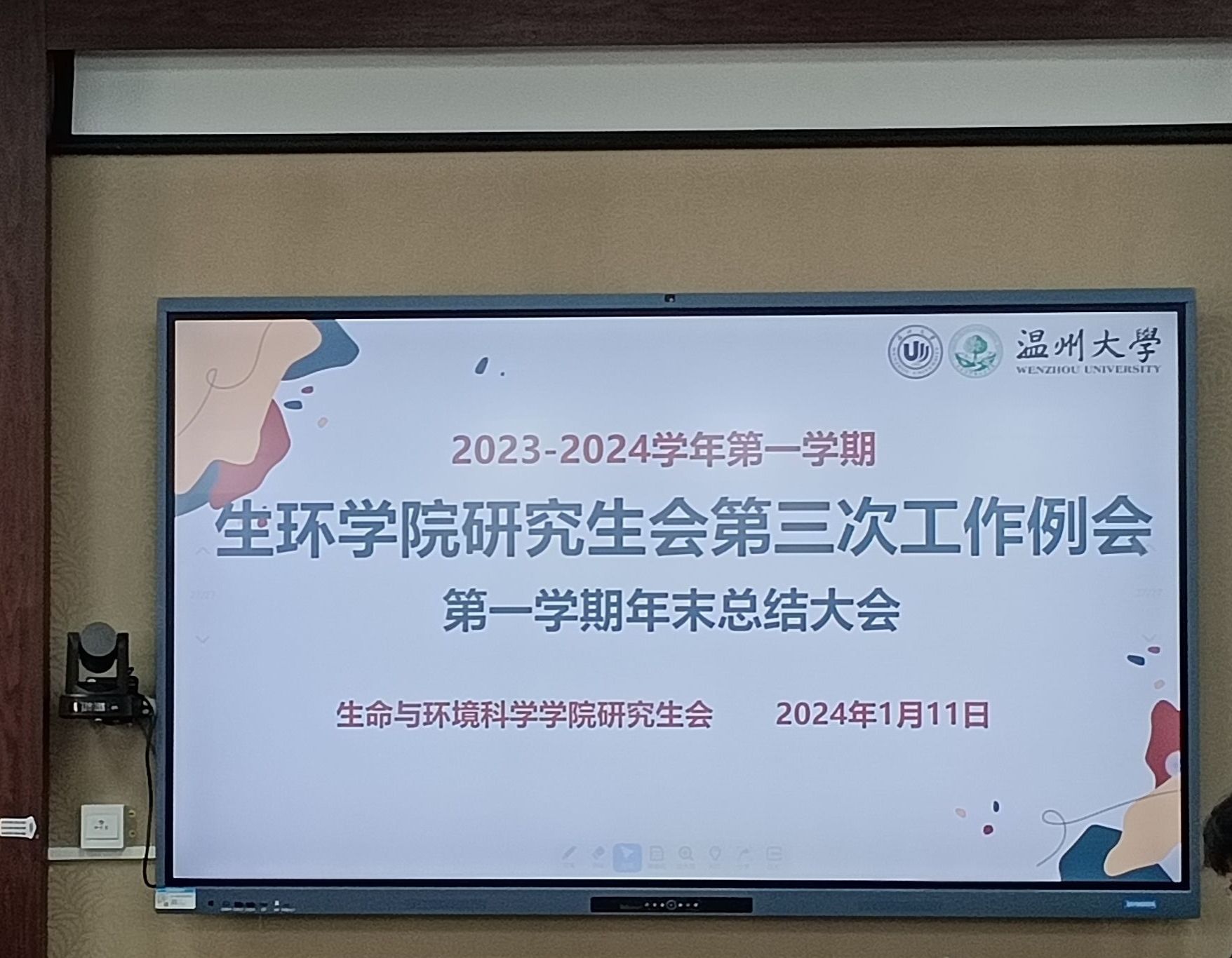 为了确保研究生会工作的顺利开展并对本学期研究生会工作进行收尾,2024年1月11日中午,生环学院研究生会2023-2024第一学期第三次工作例会暨年末总结大会在生环学院10B204顺利召开。本次参会成员有研会指导老师戴胜杰,现任主席团成员邵周翔、金佳慧、王晟达,研会各部门部长以及所有研会成员,会议由研会办公室主任李鑫宇主持,例会分为四项议程。