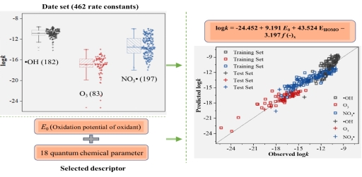 研究团队系统整合了上千个实验速率常数数据,创新性地将氧化电位(E0)作为关键耦合参数,同时引入近百个量化描述符,建立了由E0、EHOMO和f (-)x构成的最优模型(R² = 0.896, RMSE = 0.756, Q² = 0.898)。结果表明,EHOMO是决定VOCs反应活性的核心分子特征,模型经内部与外部验证及适用性域检验后表现出优良的稳健性与预测能力。该研究为提升VOCs大气降解机制解析效率、降低试验成本提供了有效工具。同时为大气污染控制及多介质暴露风险评估提供了重要理论支撑。