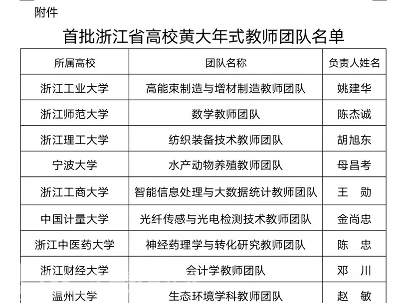 中国教育在线浙江站讯 (记者 陈显婷 通讯员 汤烨 钱恩仁)近日,浙江省教育厅公布首批浙江省高校黄大年式教师团队入选名单,温大赵敏教授领衔的生态环境学科教师团队成功入选。