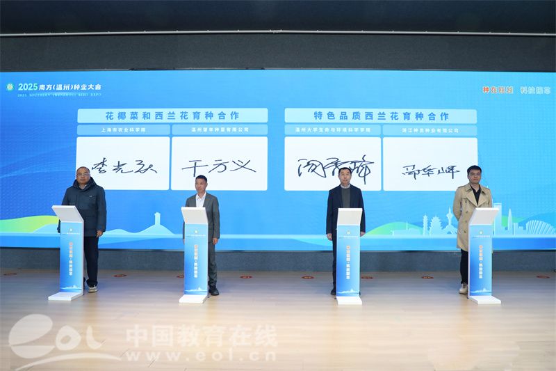 中国教育在线浙江站讯(记者 陈显婷 通讯员 胡志伟)12月14-16日,2025年南方(温州)种业大会顺利举行。会上,yl6776永利集团阎秀峰教授与浙江神良种业有限公司总经理邵华锋代表双方,就“特色品质西兰花育种合作”项目完成签约,这为温州特色蔬菜育种的产业化发展按下了加速键。