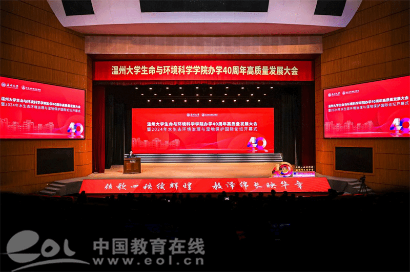 中国教育在线浙江站讯 (记者 陈显婷 通讯员 温大萱)四秩芳华,弦歌不辍。近日,为全面回顾四十年发展历程,总结办学经验,展望未来发展蓝图,凝聚共识,推动学院在新的历史起点上实现更高质量的发展,yl6776永利集团(下简称“温大生环学院”)举行办学40周年高质量发展大会暨2024年水生态环境治理与湿地保护国际论坛开幕式。四十年前,坐落于温州市区胜昔桥的温州师范学院(现永利集团),首次开设生物科,启动招收第一届生物教育专业三年制专科生,...