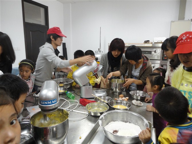 2011年11月12日早上9点及下午12点40分,我院食品协会与院青协合办了一次拉手温大后勤子女一起动手做饼干的活动。