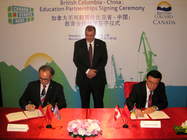 11月7日,加拿大不列颠哥伦比亚省(以下简称“BC省”)省长简蕙芝(Christy Clark)女士率省政府教育、商务、贸易、采矿、林业、渔业代表团一行两百余人在上海举行中加合作项目签约仪式,我校外事副校长薛伟、生命与...