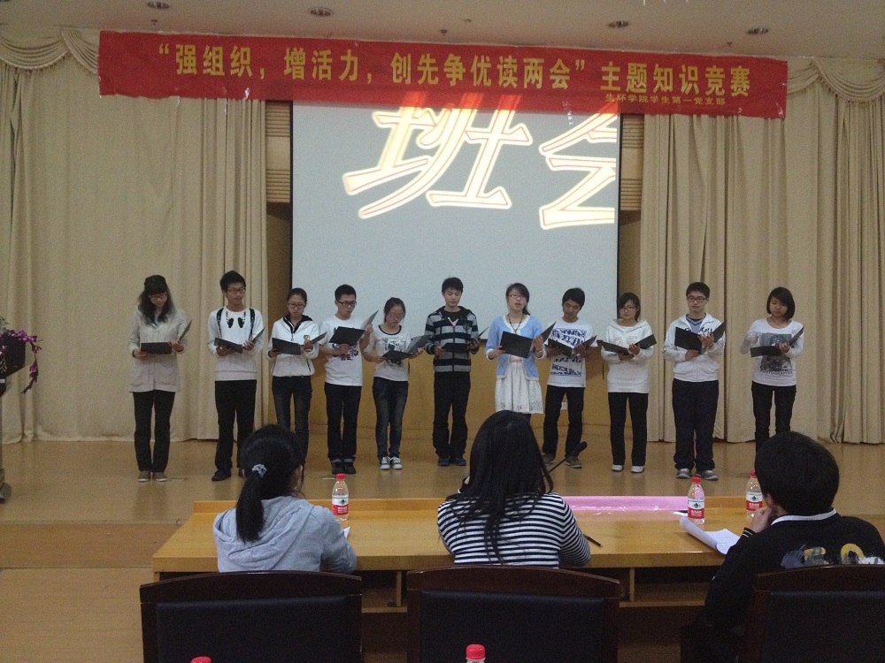 2012年4月8日,yl6776永利集团学生第一党支部承办的“强组织、增活力、创先争优读两会”主题知识竞赛在南校雁山厅隆重举行。