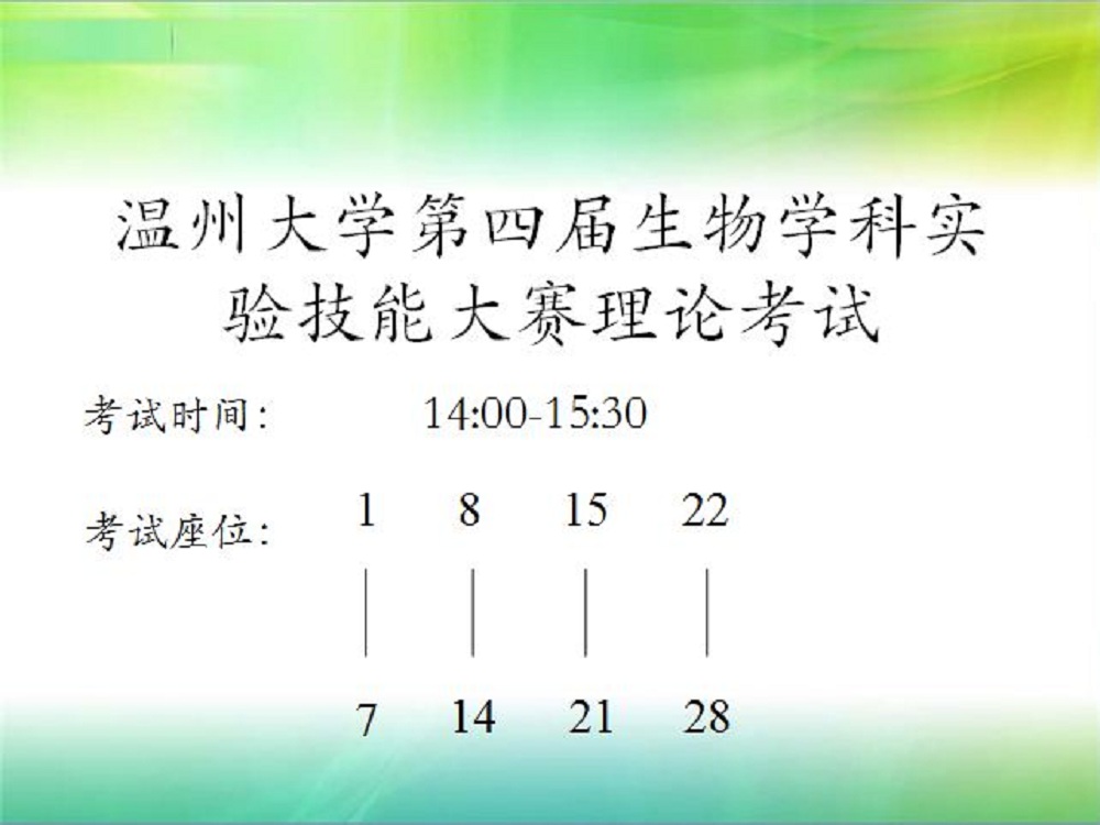 2012年4月6日下午14点,永利集团第四届永利集团第四届生物学科实验技能大赛理论考试于生化大楼11A-201和11A-206正式开始,同时也标志着本届实验技能大赛正式拉开了序幕。